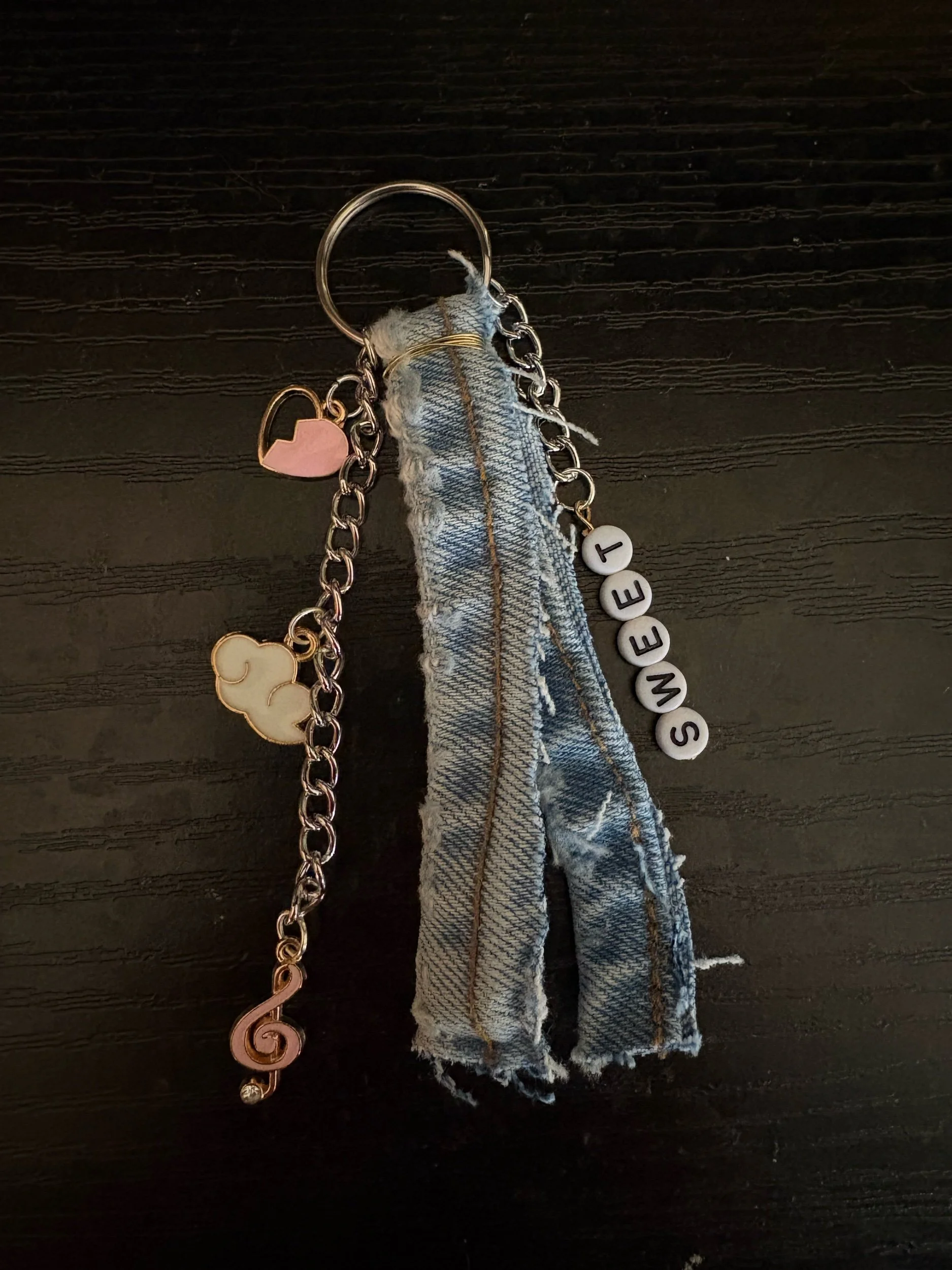 Shop › Jean "Dream" Keychain Image 1 of 1 Jean "Dream" Keychain $7.50 Made with blue jean material. Add To Cart Added! Made with blue jean material. You Might Also Like Quick View Jean "Sweet" Keychain $7.50 Quick View Jean "Love" Keychain $7.50