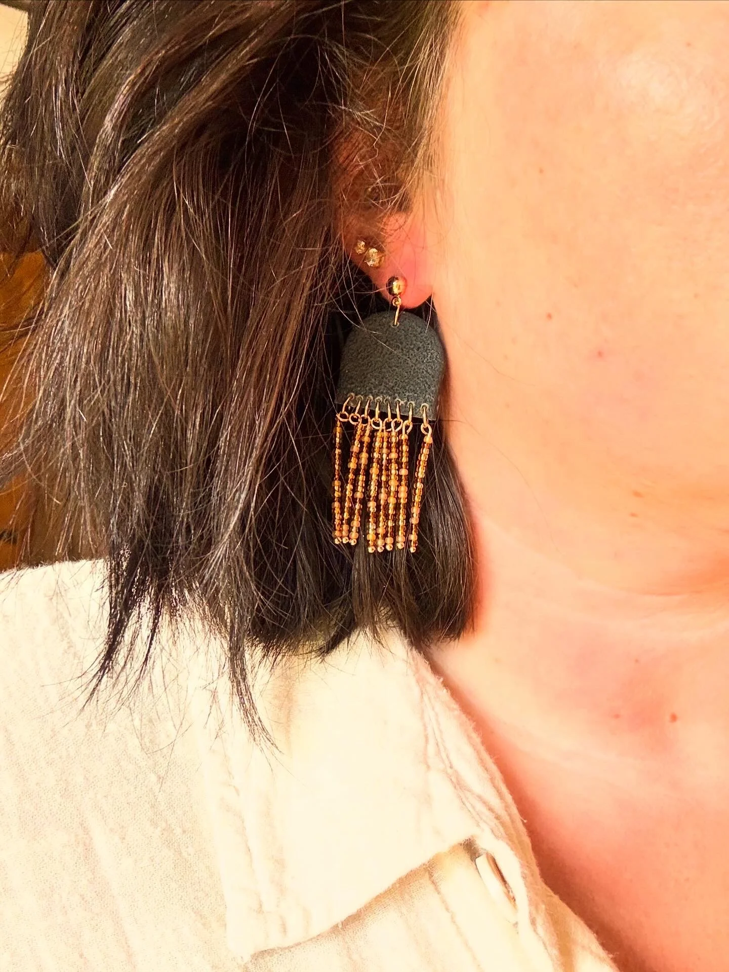 Gold and Neutral Dangle Earrings